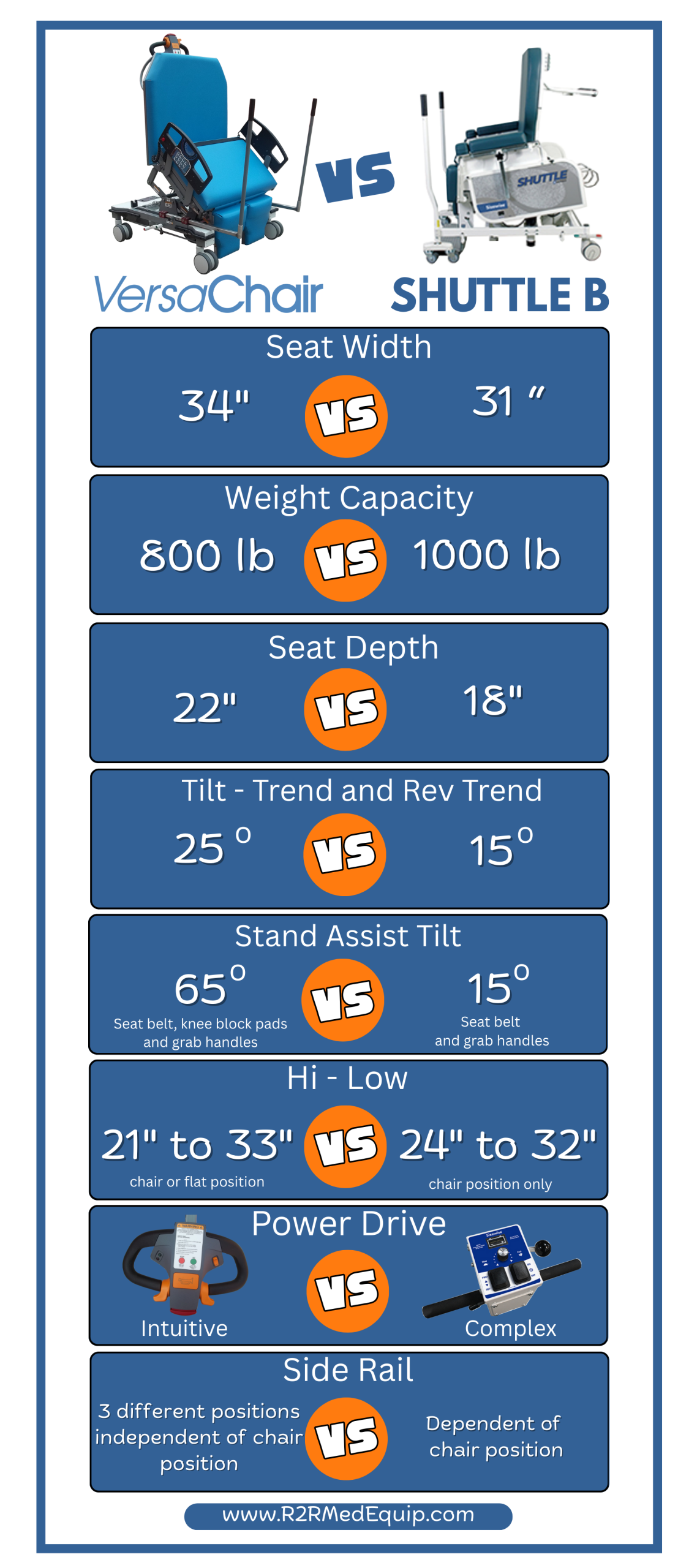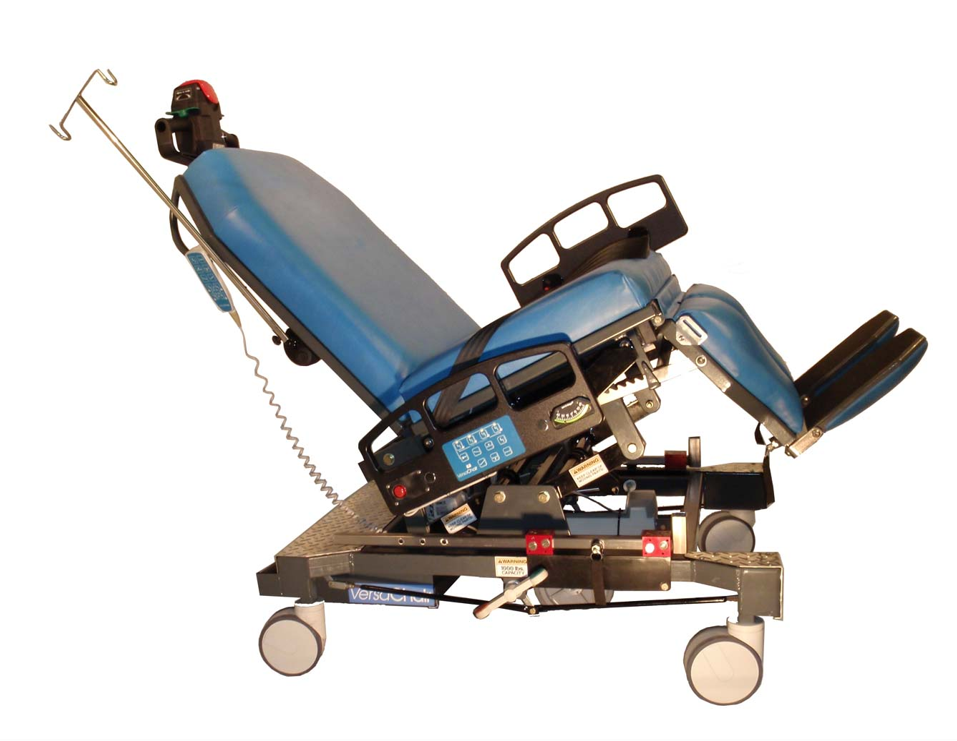 The VersaChair is an advanced stand-assist medical ortho chair tailored for plus-size patients with limited mobility, offering versatile functionality across various clinical settings. Equipped with precision battery-operated actuators, the VersaChair allows effortless position adjustments at the touch of a button. Its ‘push-to-run’ controls, powered by an 8-hour battery, enable seamless transitions between supine and sitting positions using dedicated chair and table buttons. The chair can also tilt backward up to 25 degrees to redistribute pressure and aid repositioning. With a 12-inch seat height adjustment range via high-low buttons, the VersaChair facilitates easy entry and lateral transfers. Its side rails adjust to three positions and can be lowered for pivot transfers from a bed, while removable or flip-up footplates ensure secure floor contact for the patient’s feet.